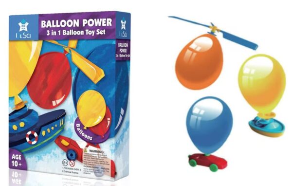 1 Balloon Racer, 1 boat, 2 connect tubes, 3 wings, 6 balloons