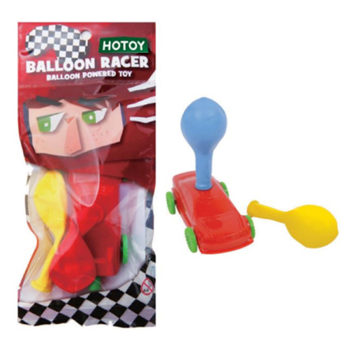 Balloon-Powered Race Car Set: This amazing, balloon-powered flying and racing toy set provides hours of fun; Simply attach the balloon, pump it up, and launch the car, no batteries or chargers are required.